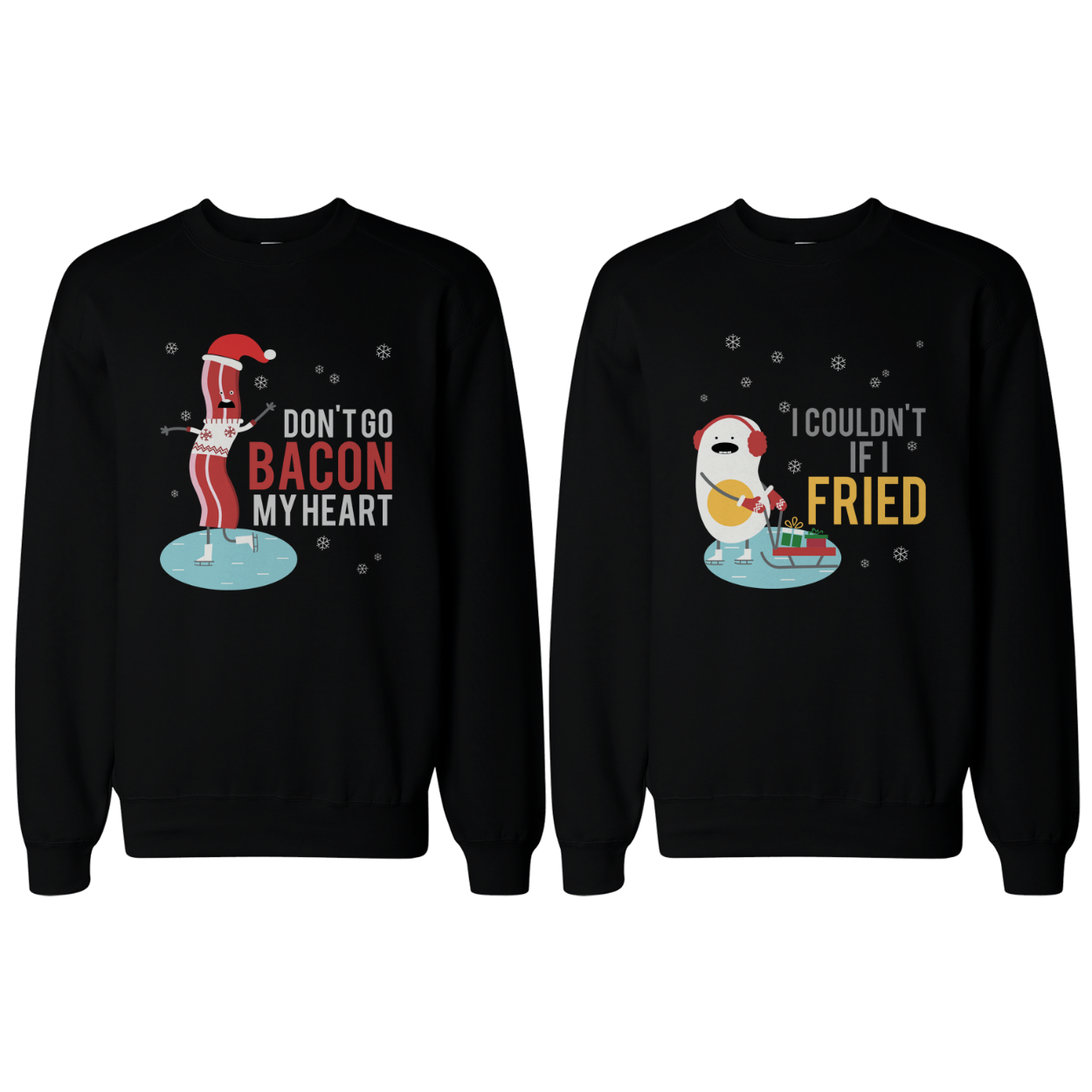 Bacon and Egg Couple SweatShirts Funny Graphic Sweaters for Winter