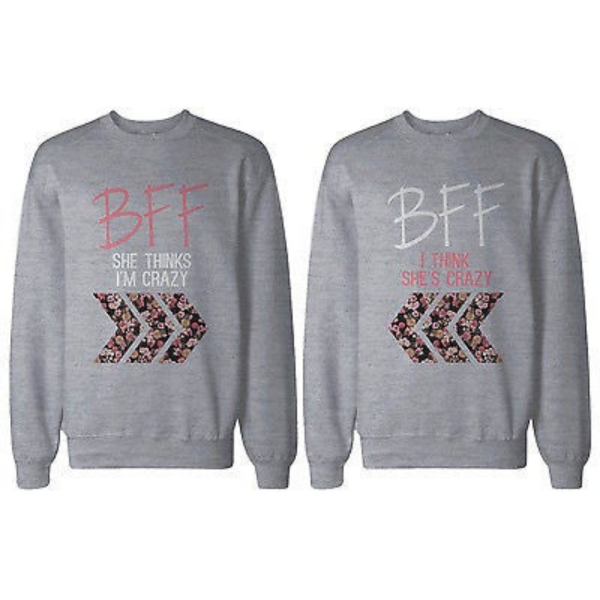 Crazy BFF Floral Print Grey Sweatshirts for Best Friends Matching Sweater