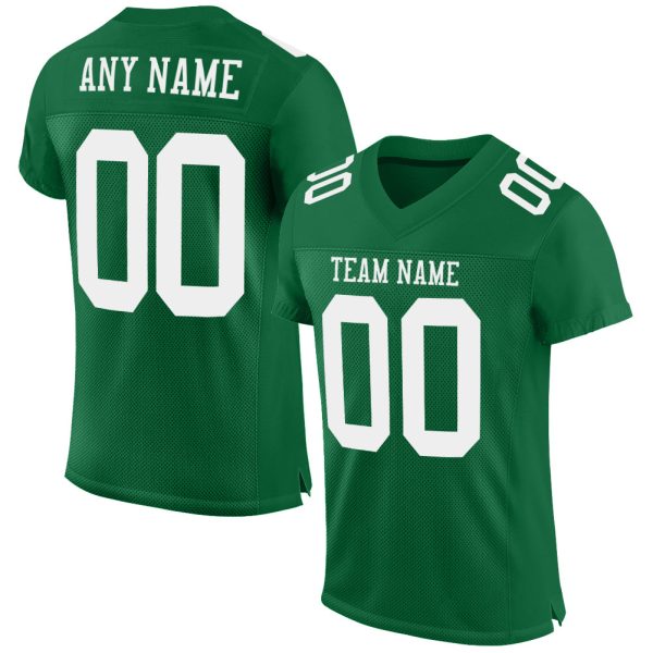 Custom Kelly Green White Mesh Authentic Football Jersey