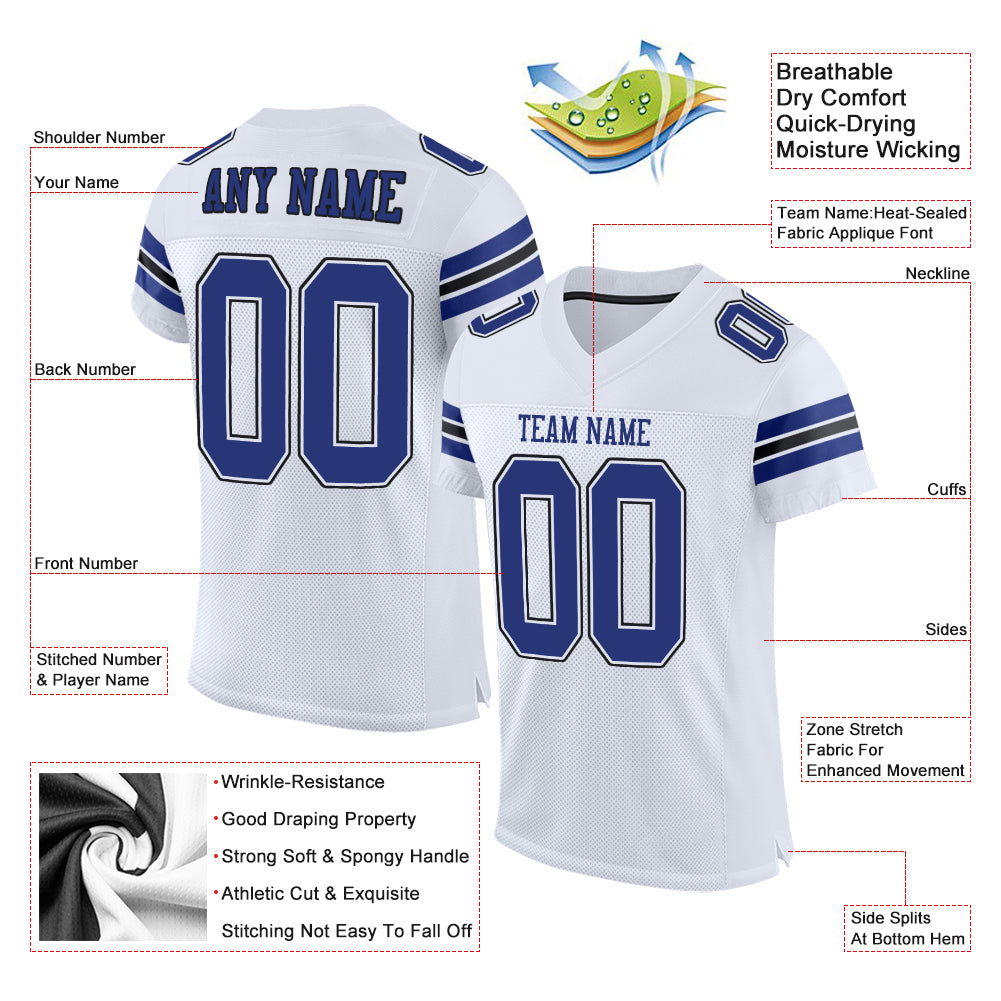 Custom White Royal-Black Mesh Authentic Football Jersey