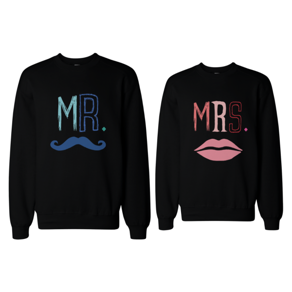 His and Her Mr Mustache and Mrs Lips Matching Sweatshirts for Couples