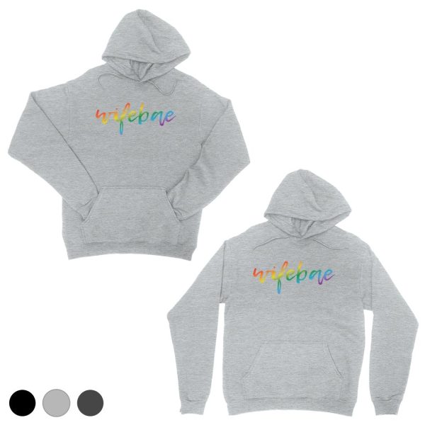 LGBT Wifebae Wifebae Rainbow Grey Matching Couple Hoodies