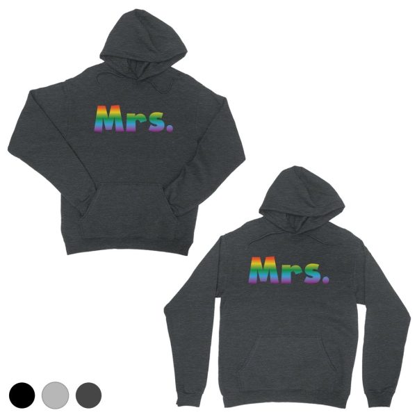 LGBT Mrs. Mrs. Rainbow Cool Grey Matching Couple Hoodies