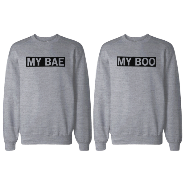 My Bae and My Boo Matching Grey Couple Sweatshirts Great Gift for Couples