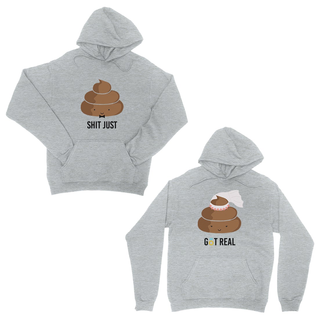 Poop Shit Got Real Grey Matching Couple Hoodies Cute Wedding Gift